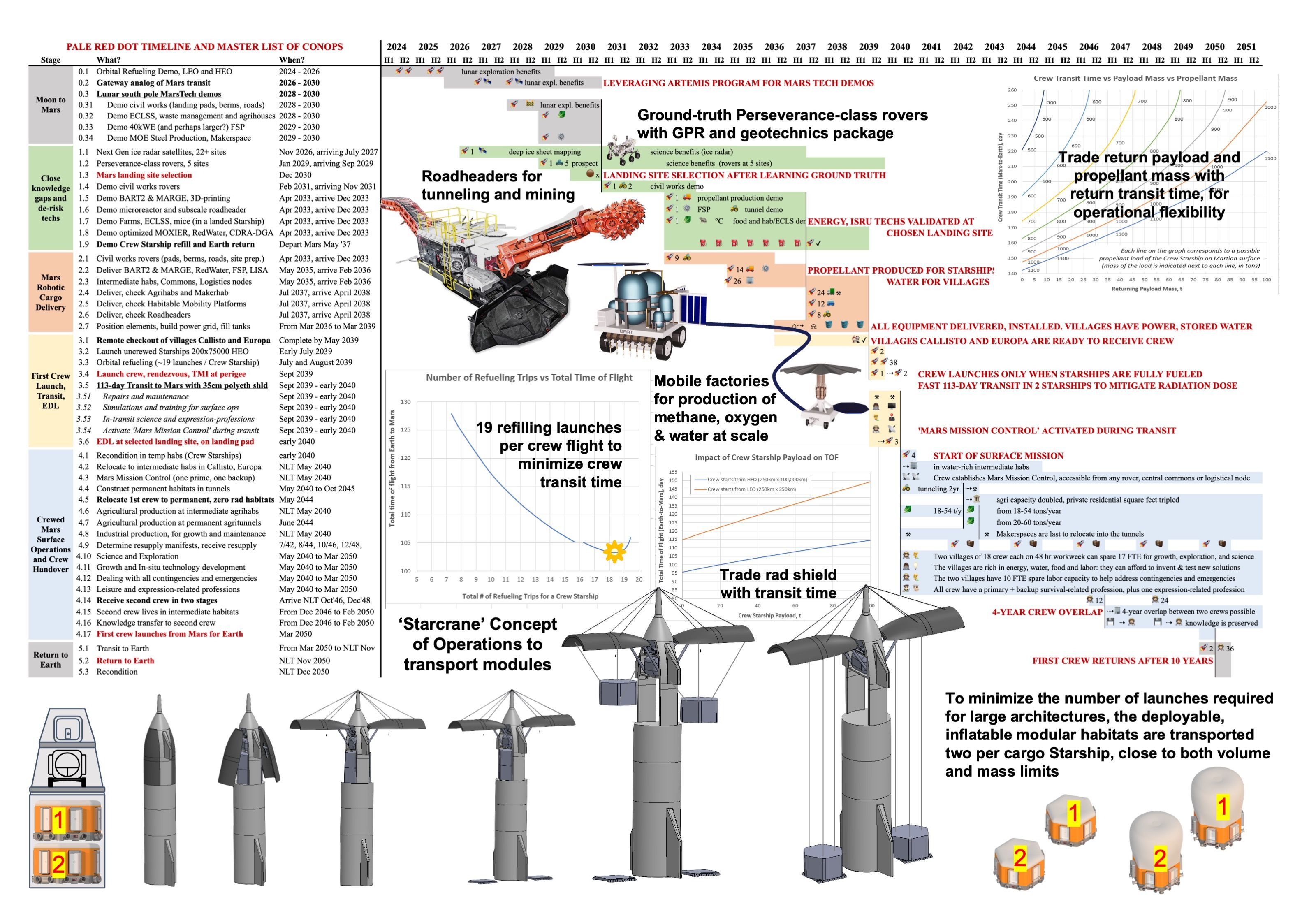 Figure: PALE RED DOT Mission timeline, concept of operations, trajectory optimizations and selected logistics technologies.